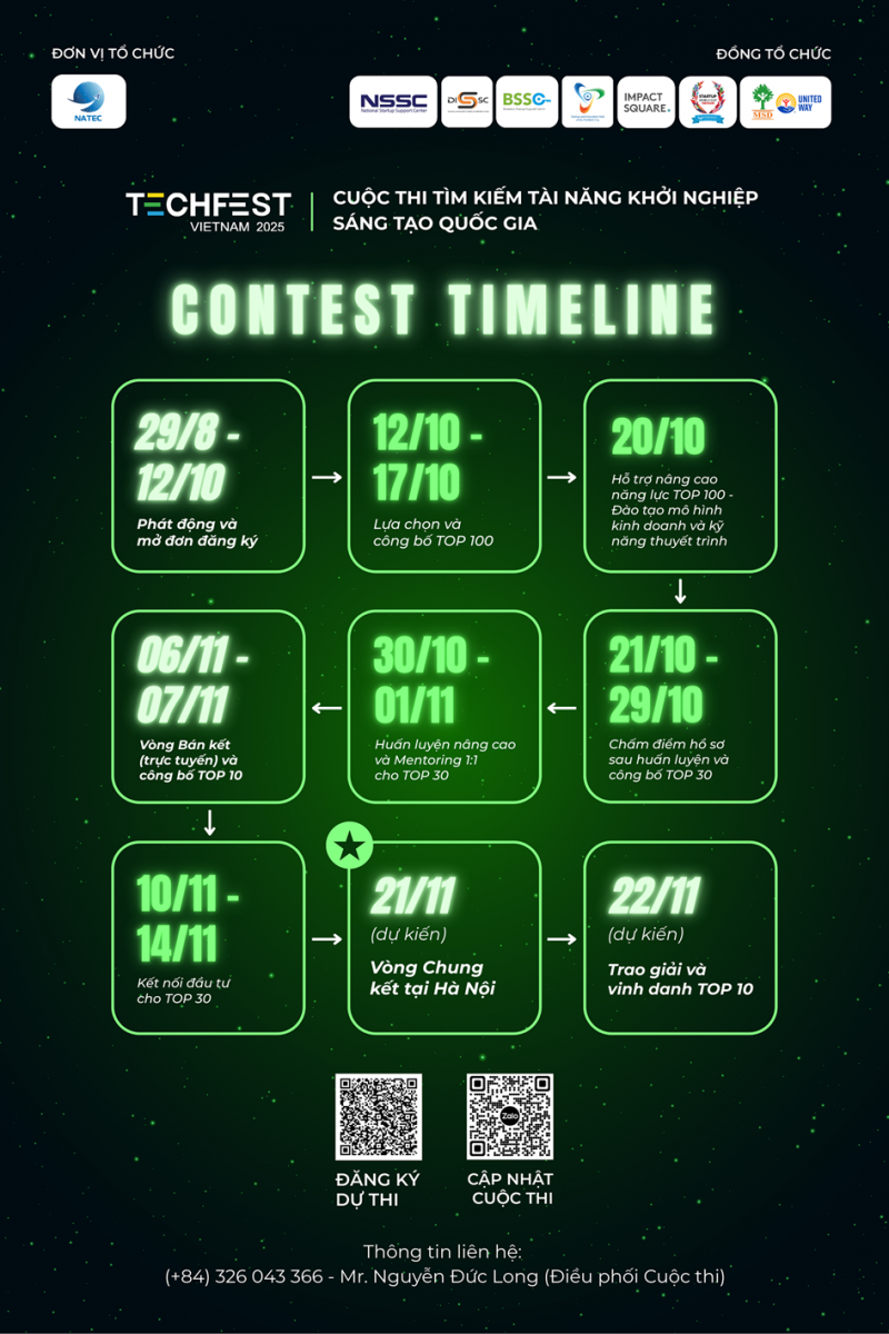 🔥 Hãy cùng theo dõi 09 mốc thời gian quan trọng để startup bứt phá cùng Cuộc thi TECHFEST 2025:
